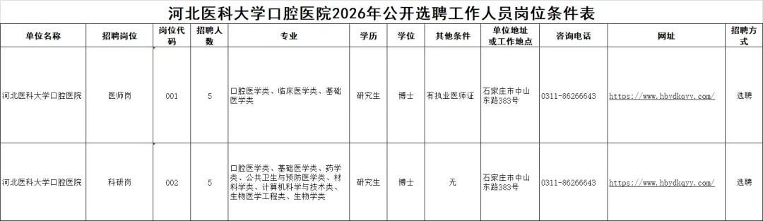 关注【石家庄本地宝】公众号,私信回复【口腔】,即可获取选聘公告详情、信息登记表二维码、岗位表/报名表下载入口、联系方式等
