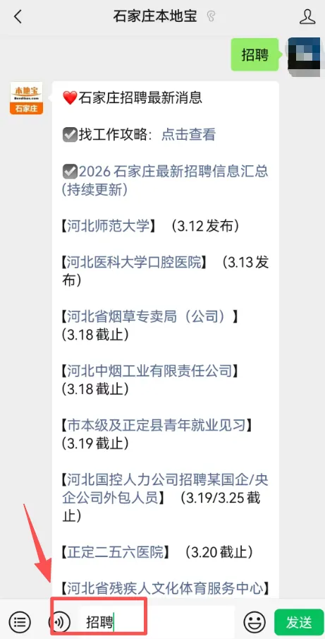 回复【招聘】查询石家庄招聘最新消息