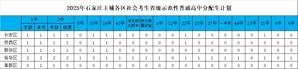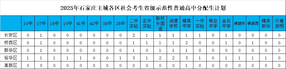 通过2025年石家庄主城区省级示范性普通高中分配生计划表可以看出,各区社会考生分得的各高中分配生名额,基本都是一个,有的甚至没有。优质高中像石家庄一中系、二中系、精英、正中东等校分配生指标加起来也不过五六个。这意味着想要拿到指标绝非一件易事,在中考成绩达到目标高中分配生最低控制线的前提下,还需要一点“运气”加持。
