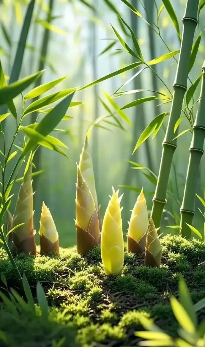 幼时出笋,他日凌云,与梅兰为伴,摇清籁满林,幽篁月下闻长啸;