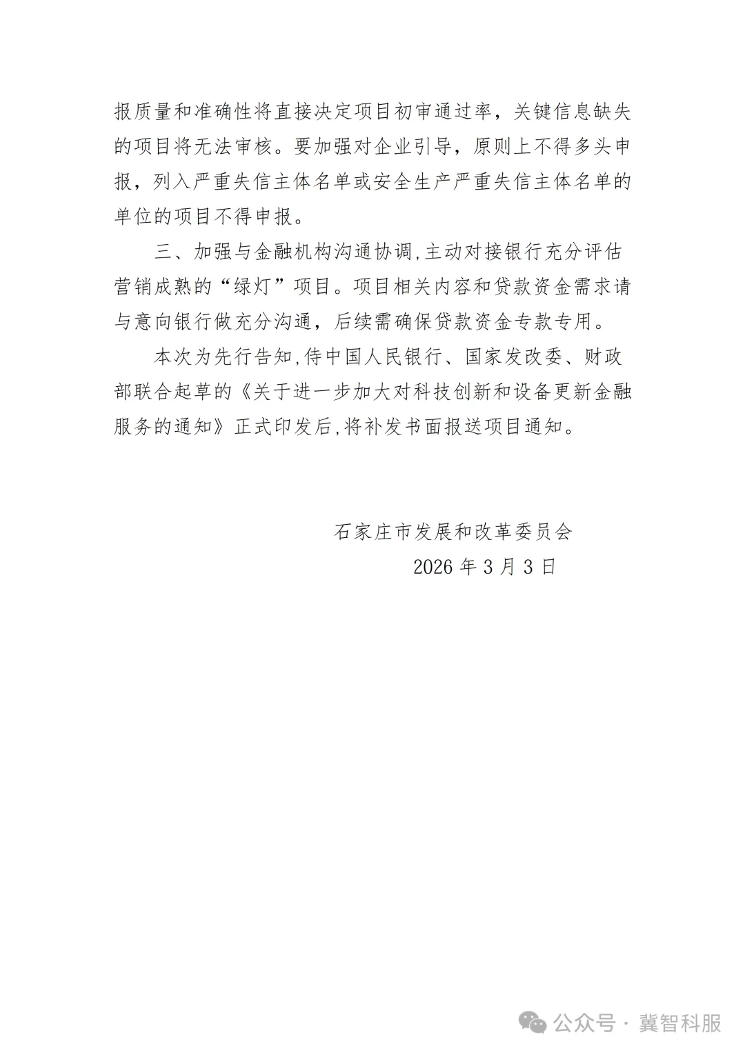 附件:关于设备更新和技术改造贷款项目申报的预通知