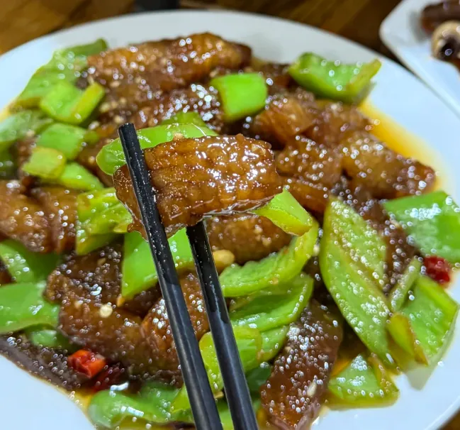 一定要试试当地的“皮渣”。这东西看着像凉粉,其实是用红薯粉条做的。切成菱形块,在锅里煎得两面起焦皮,或者和大白菜一起炖。夹一块放嘴里,软糯又带着点韧劲,吸饱了菜汤的咸鲜,吃完浑身都暖和,那是土地给胃最踏实的拥抱。