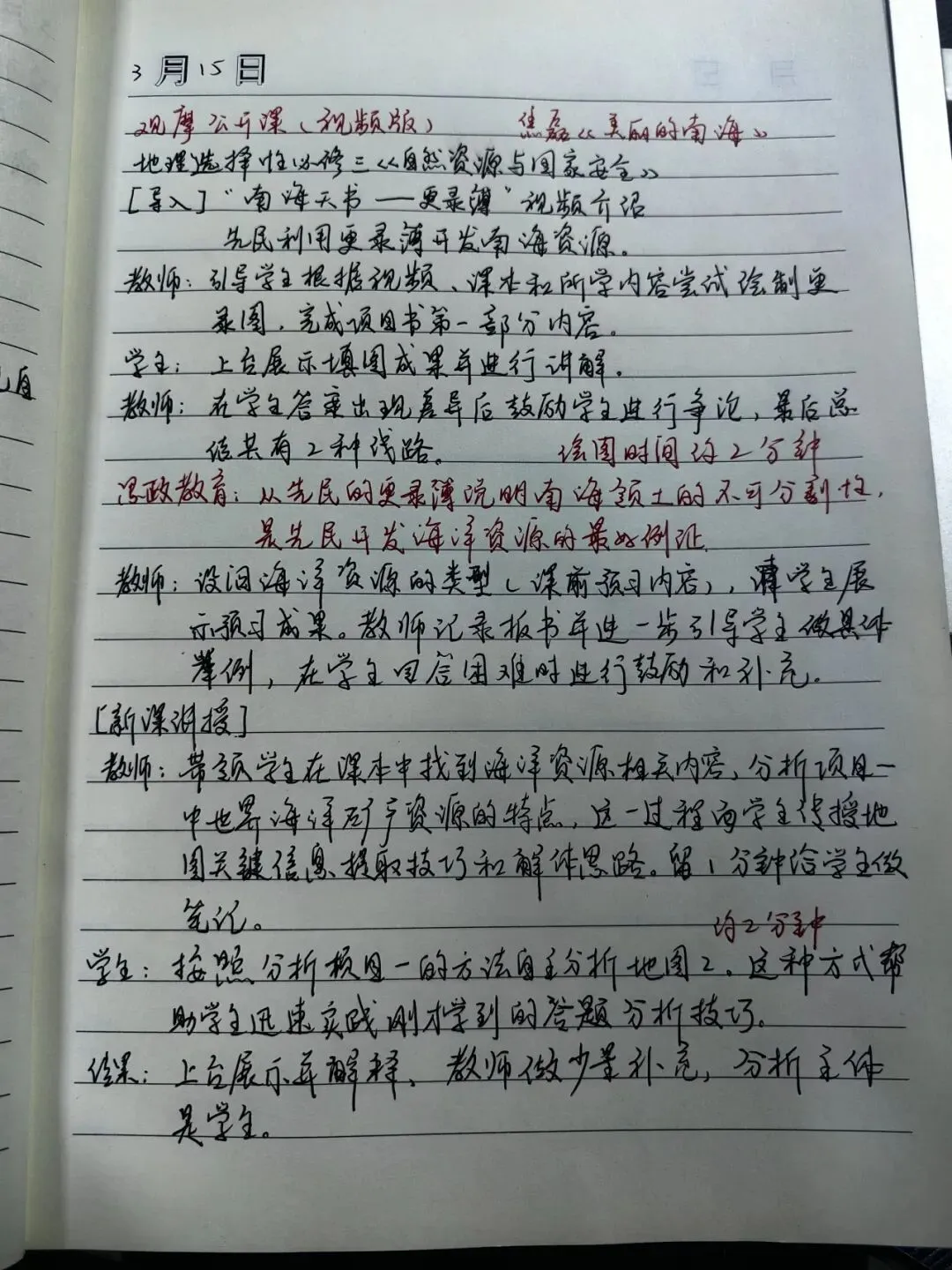 叶袁蕾同学从课程内容的安排、教学方法与课堂互动设计、板书运用技巧等角度对公开课内容进行评述;郑婧怡同学着重对焦磊老师的课堂把控能力、课程逻辑结构的排布和教学重难点的落实发表心得看法;刘璇同学认识到调动学生自主学习的重要性,主张让学生成为学习的主体,将课堂还给学生。