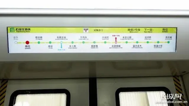 石家庄地铁2号线第18列车辆内的站点显示屏