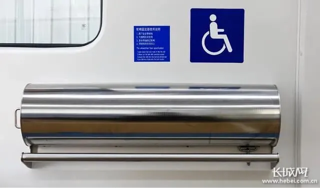 车内设备布置突出以人为本的设计理念,设置有专门的轮椅固定器