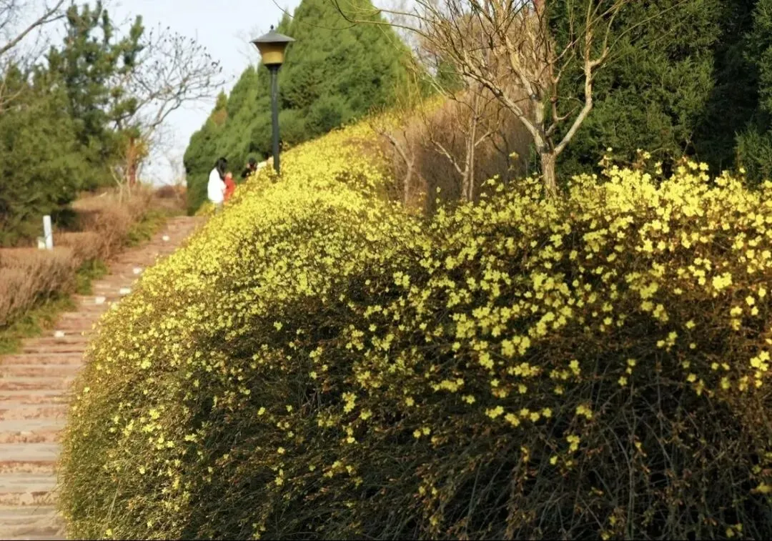 在赞皇的公园里,迎春花率先点亮整个春天。图自 赞皇文旅