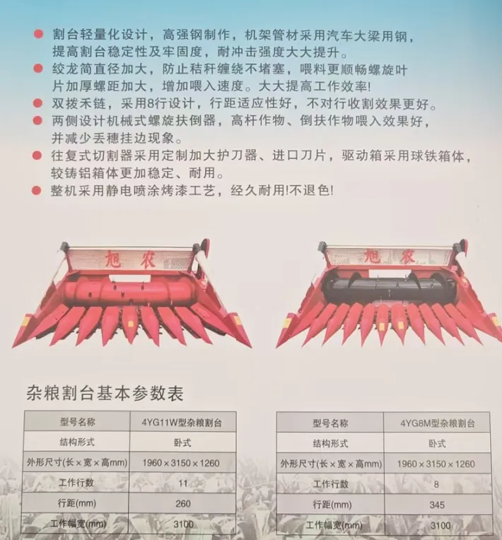 旭农割台 设计先进、制作精良、性价比高,赢得了广大用户的一致好评,吸引了众多的合作伙伴。旭农愿与各界朋友携手共进共创辉煌!