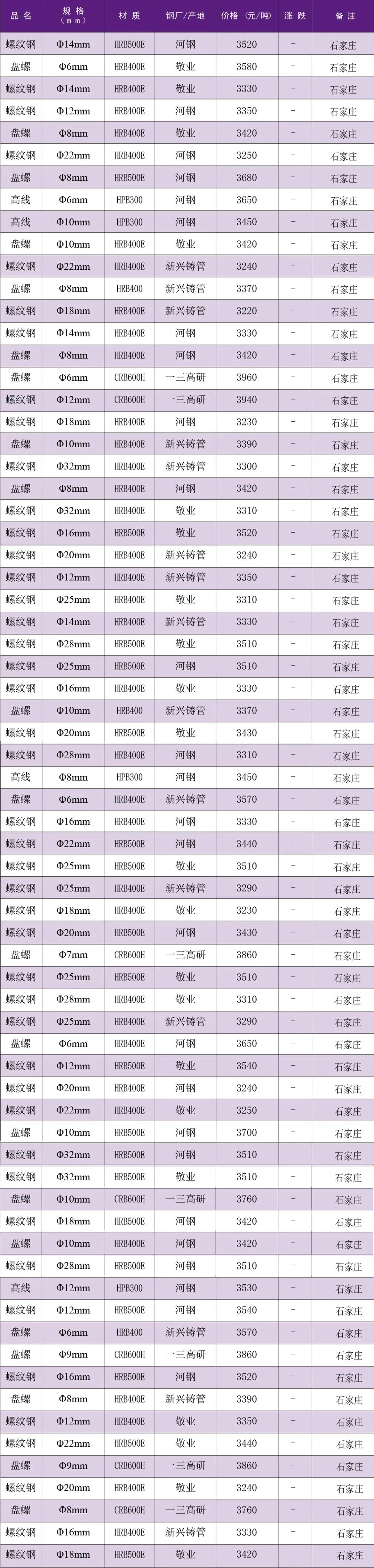 【每日一价】3月18日石家庄市场建筑钢材价格行情