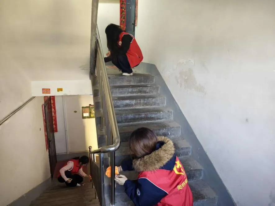 环境集中整治,家园焕然一新。活动现场,志愿者们分工明确、协同配合。大家手持扫帚、抹布、垃圾袋等工具,对楼道内堆积杂物、卫生死角进行集中清理,认真擦拭楼梯栏杆,清扫公共区域地面,规范摆放乱停车辆,用实际行动改善小区居住环境,消除安全隐患,切实让楼道更通畅、环境更整洁、居民更舒心。