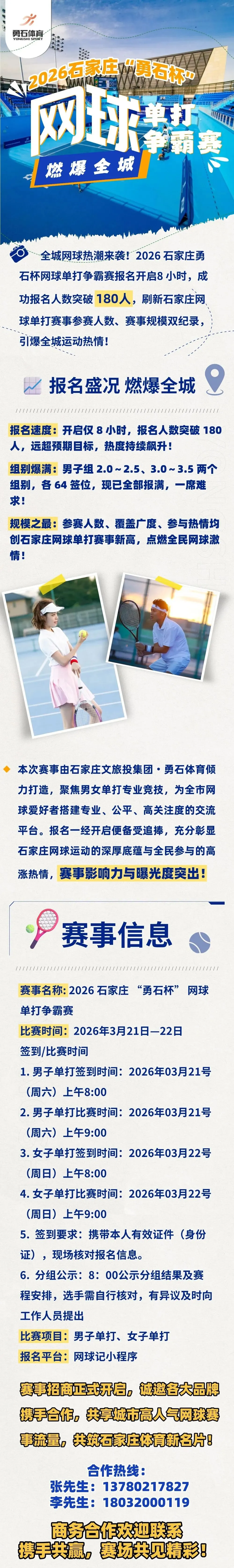 >8 小时破 180 人!石家庄规模最大网球赛燃爆全城!男双组别 64 签位全满!