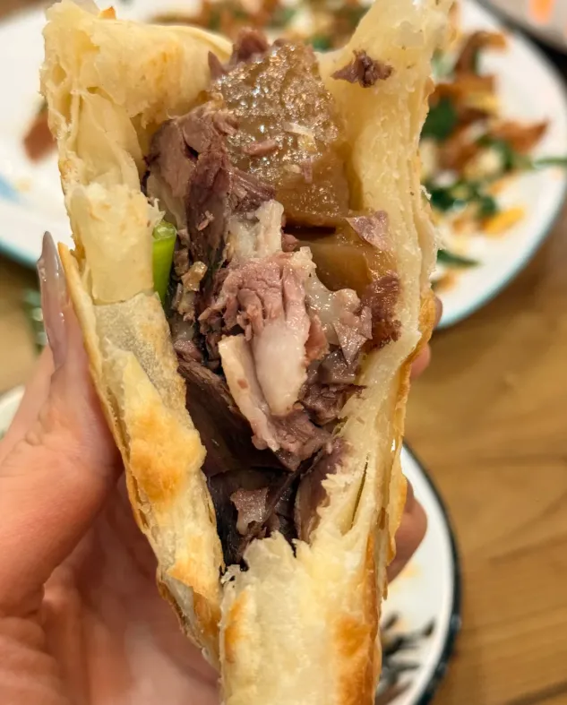 火烧先烙后烤,外壳要干脆,切开不掉渣。驴肉多用卤制,肉要紧实不柴,切薄片趁热塞进去,顺手抹点卤汁或椒盐。不是靠酱味压过去,而是肉香顶上来,越嚼越香