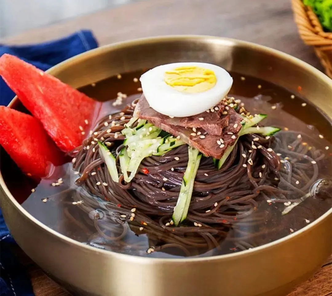 冷面:重庆的夏天靠冰粉“续命”,延边的夏天靠现压冷面“还魂”。荞麦面劲道,汤底带冰碴,配上锅包肉,绝了!