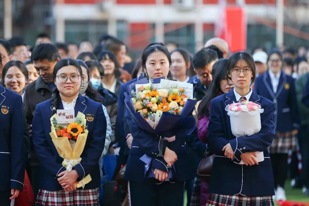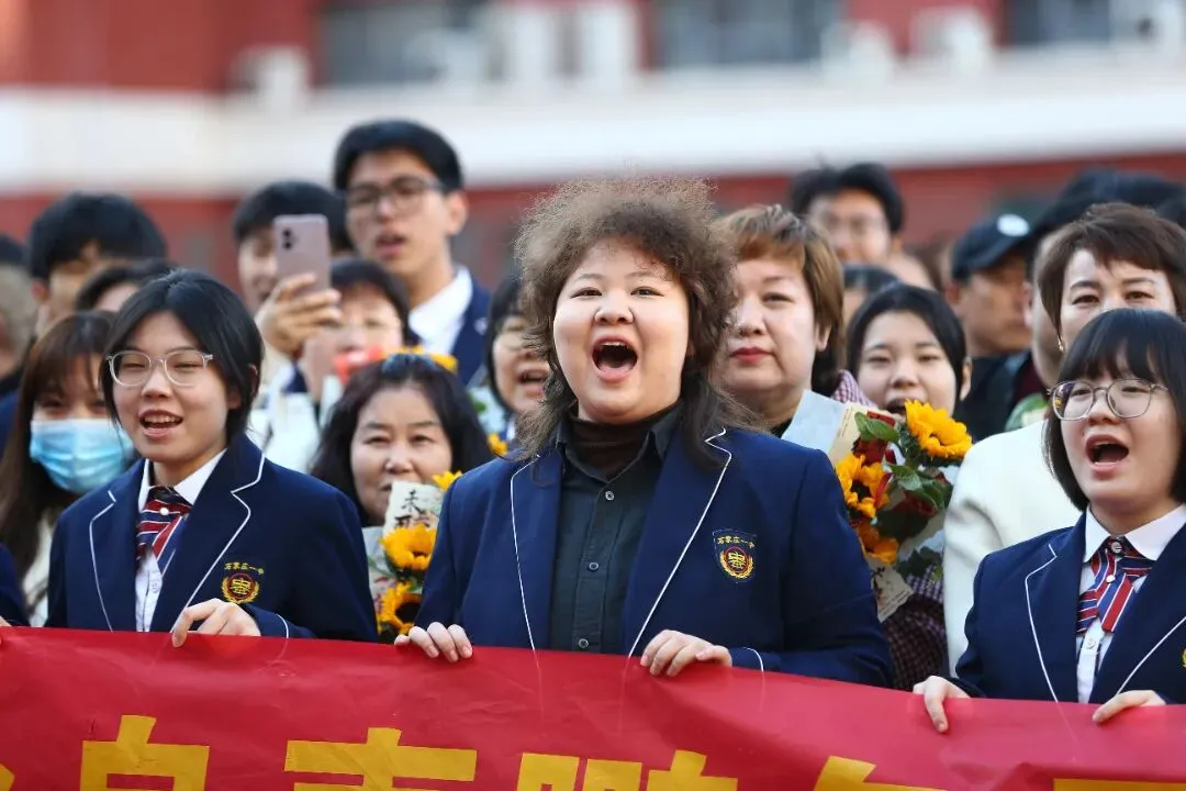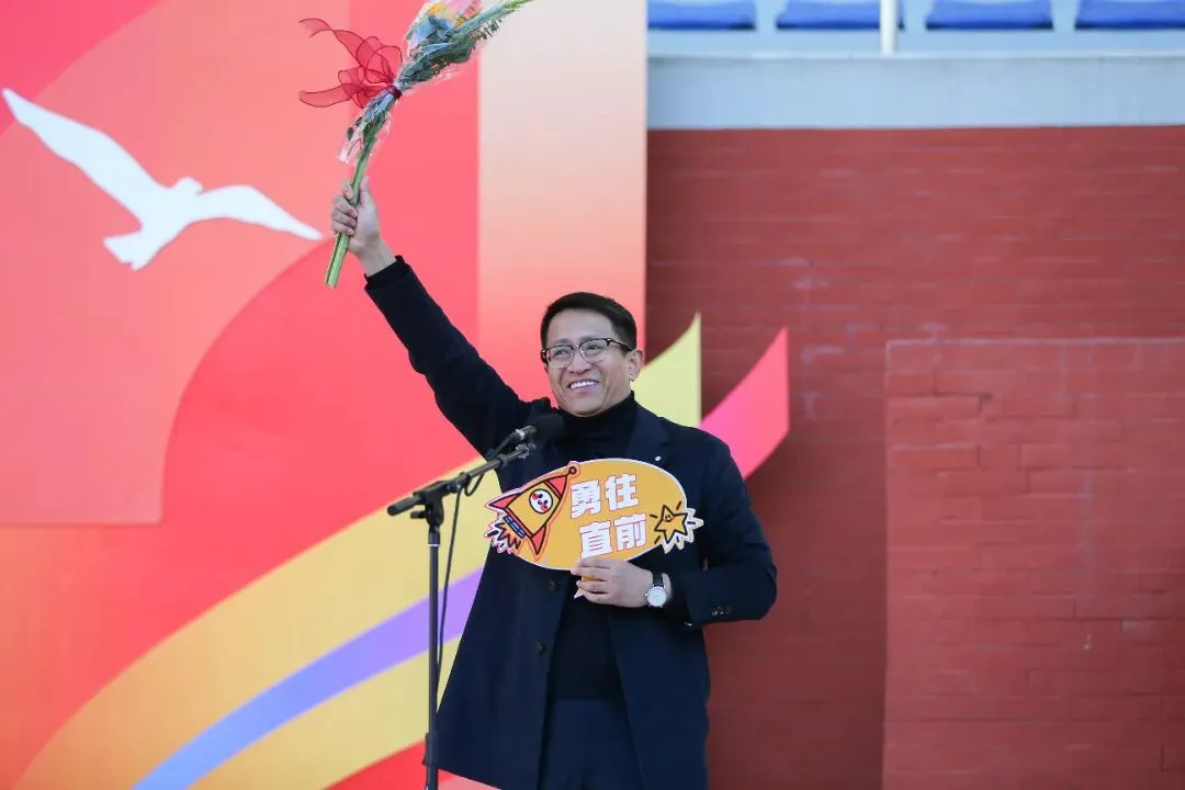 学科特色祝福,尽显师者匠心。李超主任带领高三级部全体教师登台,为26届学子送上专属祝福,全体教师齐声高呼“一举夺魁”,手中金黄的向日葵高高举起,既是对学子们金榜题名的美好期许,更传递着向阳而生、逐梦前行的力量。