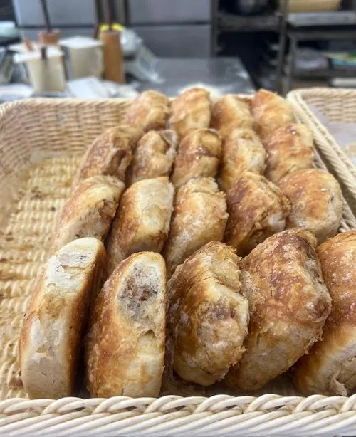 和天津那种层次分明的不同,邢台的烧饼讲究的是"实"。一口咬下去,外皮酥得掉渣,里面却软得像棉花,芝麻香混着炉火的焦香,那一刻你会觉得,这才是碳水该有的尊严。配着一碗豆腐脑,咸香鲜嫩,胃里暖烘烘的,整个人就像被拧紧的发条松了一圈。