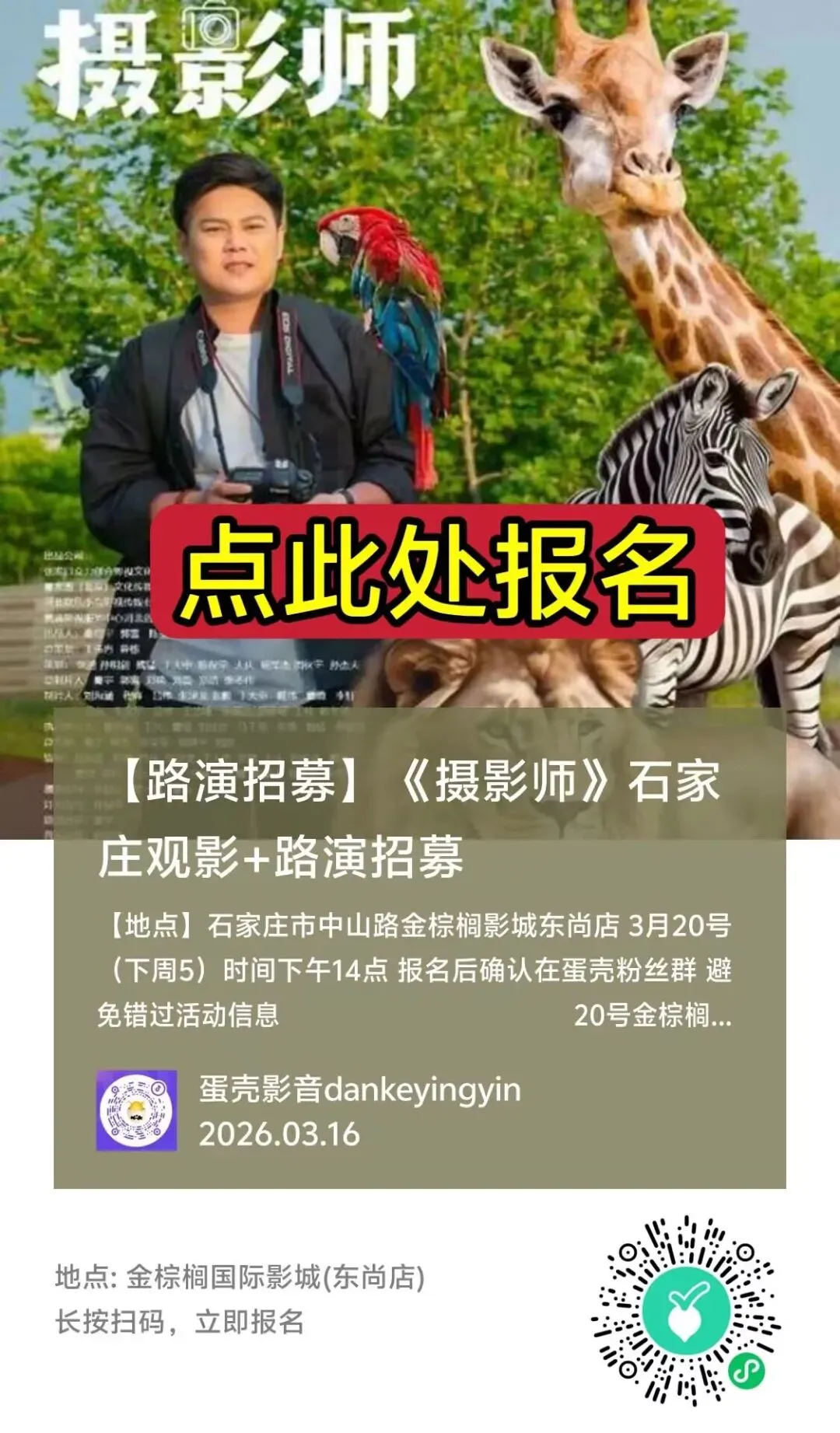 观影时间:3月20日(周五) 影城大厅14:00 开始签到)