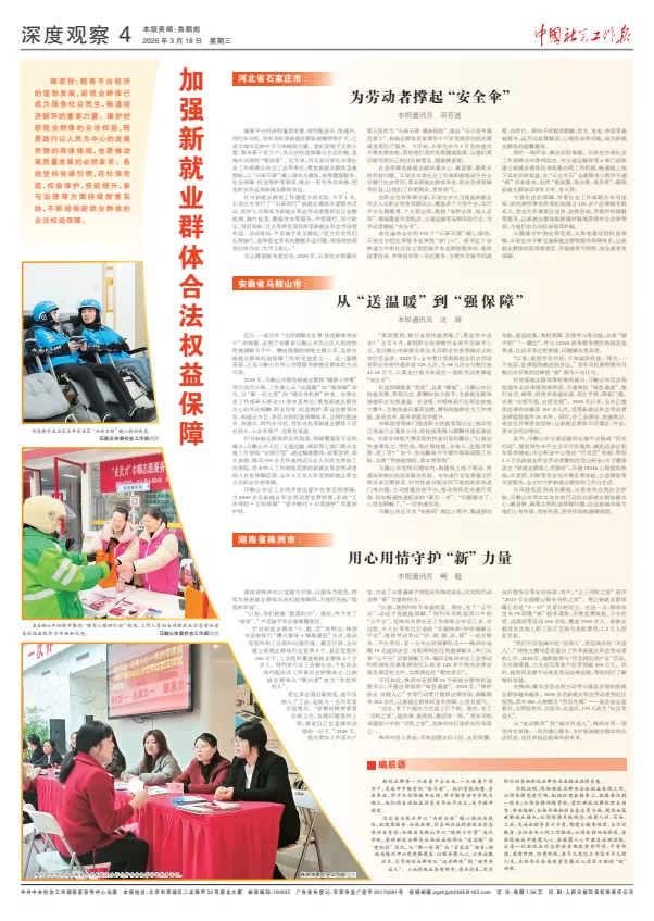随着平台经济的蓬勃发展,网约配送员、快递员、网约车司机、货车司机等新就业群体规模持续扩大,已成为城市运转中不可或缺的力量。他们穿梭于大街小巷,服务着千家万户,其合法权益保障与生活冷暖,是城市治理的“晴雨表”。近年来,河北省石家庄市委社会工作部联合市总工会等单位,聚焦新就业群体急难愁盼,以“石新石驿”暖心驿站为载体,统筹健康服务、社会保障、权益维护等事项,推出一系列务实举措,把党的关怀送到新就业群体身边。