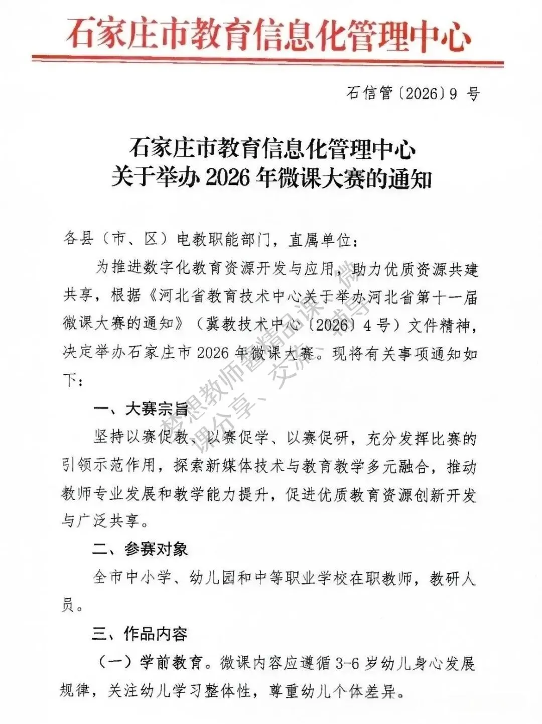 >石家庄市教育信息化管理中心关于举办2026年微课大赛的通知