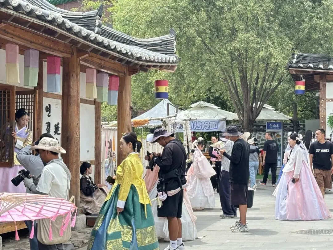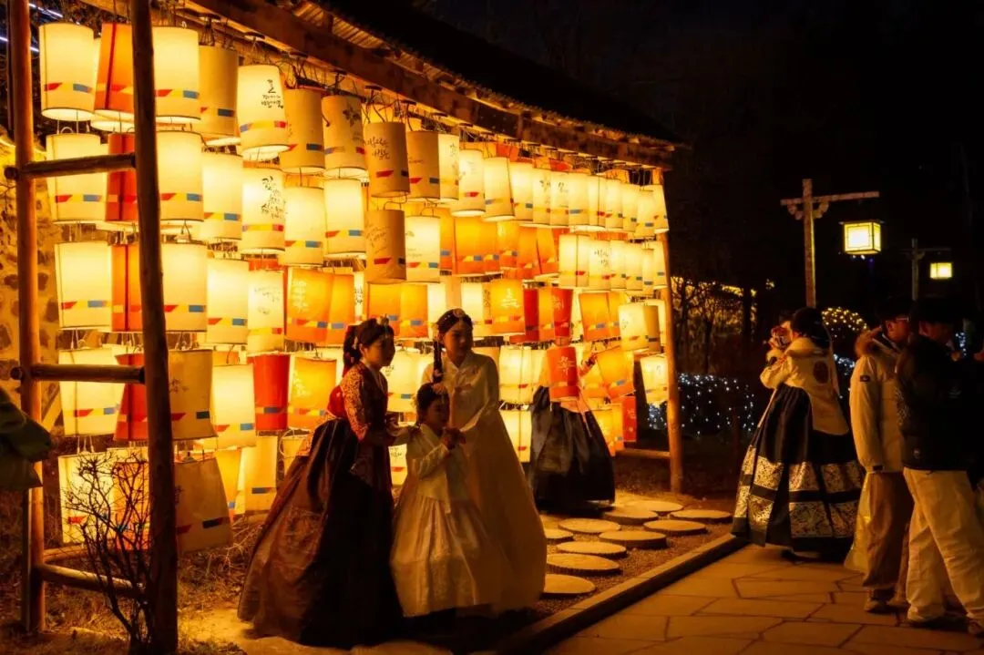 中国朝鲜族民俗园:初春时节,青瓦白墙映衬着澄澈的蓝天,草木悄然焕新,景致清雅如画。漫步园中,朝鲜族传统服装的裙摆轻轻拂过台阶,打糕的甜香与悠扬的民俗乐曲交织。夜幕降临,花灯的暖光与暮色相拥,一步一景,温柔又治愈。