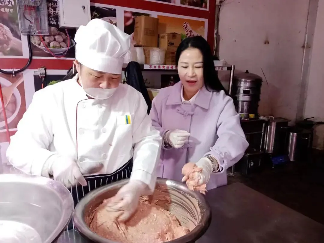 为深耕会员服务,凝聚潮商合力,传承潮汕特色文化,3月19日上午,石家庄市潮汕商会常务副会长兼秘书长佘少芳带领商会办公室工作人员,专程走访了位于平安大街南二环南雨润农产品鲜活大厅东区99号的会员企业——漫丽手打潮汕牛肉丸。商会会员、公司负责人朱漫丽经理热情接待了来访人员,以一颗地道手打牛肉丸为载体,传递潮汕匠心,共叙同乡情谊,共话发展新篇。