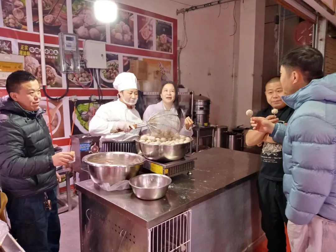 潮汕手打牛肉丸作为第七批广东省级非物质文化遗产,是潮汕美食的金字招牌,更是无数潮汕人刻在基因里的味觉记忆与乡愁。朱漫丽经理深耕这门传统手艺多年,始终坚守“真材实料、手工匠心”的经营理念,将地道潮汕风味带到燕赵大地,让石家庄市民在家门口就能品尝到正宗的潮汕味道。走访现场,朱经理特意为来访人员现场演示手打潮汕牛肉丸的完整制作过程,从选料备料到成型出锅,每一个步骤都尽显匠心,每一处细节都彰显着潮汕人“惜物尽其用”的生活哲学。