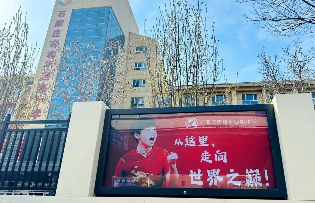 3月19日,周四,出游的第四天。石家庄天气:晴,气温:3-17度,依然是风和日丽,适合旅游的季节。今天我们在石家庄市区游览,解放广场、正太广场、湾里庙等,最后还去了市郊的石窑小镇和悬崖书店,一个接一个地惊喜。 当知道有河北电影制片厂,我们就导航来了。只是不被允许进入参观。 以前只知道上影、长影和北影等电影制片厂,还是第一次听说河北电影制片厂。原来这是一家1982年才正式成立的电影厂,前身是科教片厂。独立制作的电影不多,大部分是联合出品,例如《解放石家庄》《革命者》《守岛人》《古田军号》。 今天的第二站来到了孙颖莎的母校——石家庄市和平西路小学。这所学校最核心、最有名的特点就是全国顶尖的乒乓球特色学校,被官方称为“乒乓摇篮”、“世界冠军的摇篮”。孙颖莎5岁起在此练球,我们在校门口就看见了宣传栏。