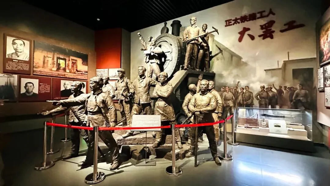 星火燎原:1922年正太铁路工人大罢工(1000余人坚持12天胜利),工人运动群像雕塑。