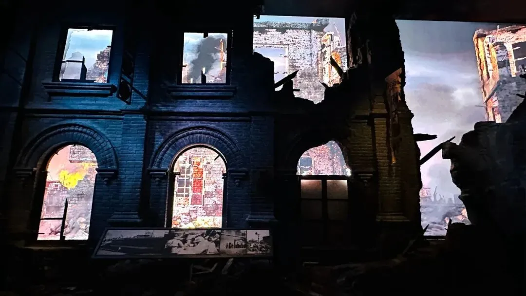 街巷激战实景:仿老石门街巷、残墙、散落武器;灯光音效模拟战火,沉浸式体验。