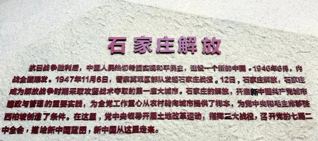 石家庄解放是中国共产党从“农村包围城市”转向“接管建设城市”的试验田。石家庄是第一座完整接管、建设的大城市,被誉为开国第一城。