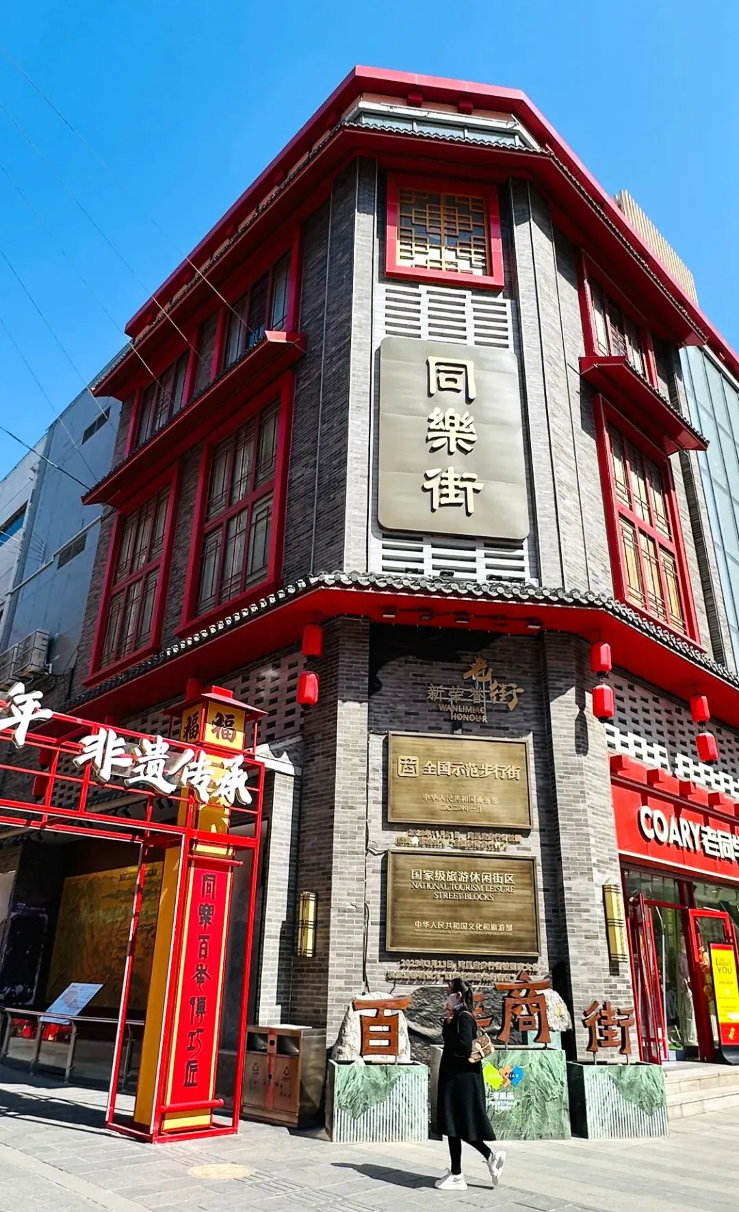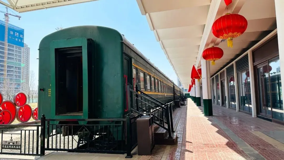 走出展厅,就有一个现实版的绿皮火车。这里是原1987年建成的老火车站1号站台(2012年老站退役,2023年解放纪念馆开馆同步改造)。 这里也是免费开放的城市怀旧文旅步行街,历史站台+退役火车+文创商业+季节主题打卡地。