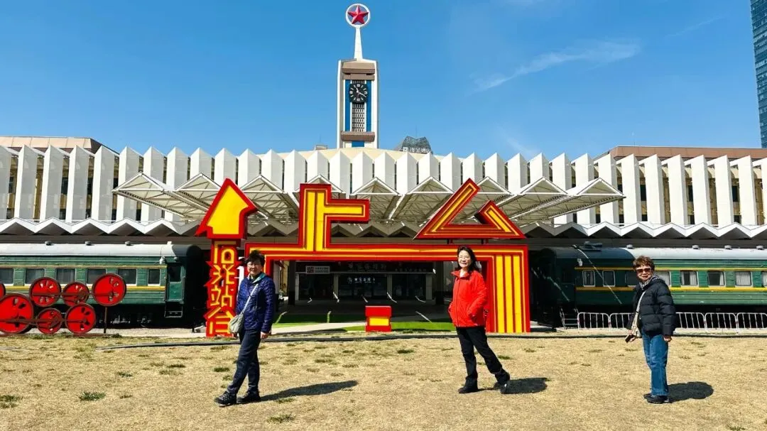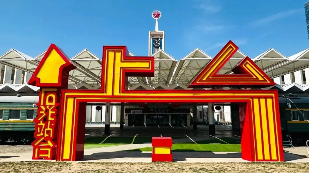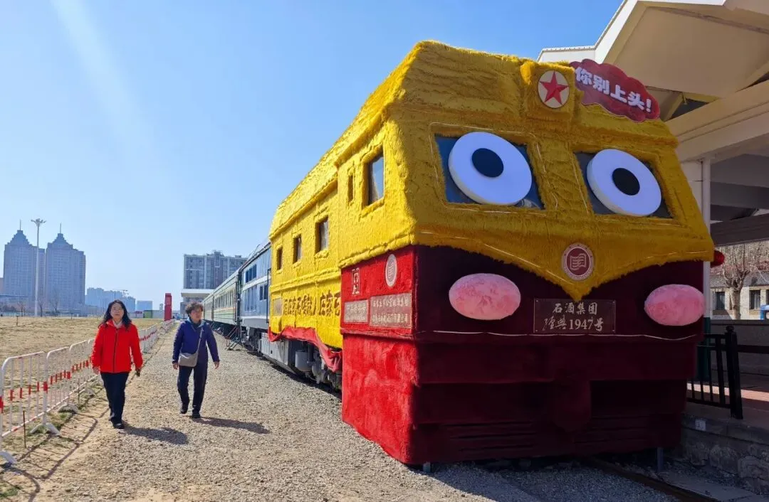 东风4C退役火车头(网红“毛衣火车头”)。冬季裹彩色针织装饰,春季做绿植花卉布置,是全网爆款打卡点。