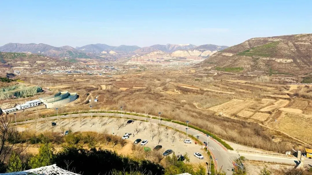 一侧是陡峭岩壁,另一侧直面太行群山。