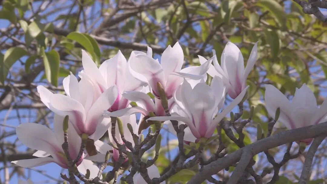 目前,花卉园内鲜花集中绽放的区域就是桂花园,洁白如雪的白玉兰、含苞待放的紫玉兰、还有花香扑鼻的郁香忍冬、杏花和美人梅等竞相绽放,微风拂过、花瓣飘落,勾勒出“人在画中游”的诗意场景。