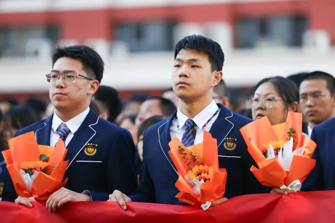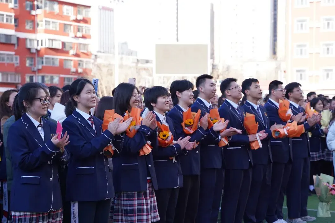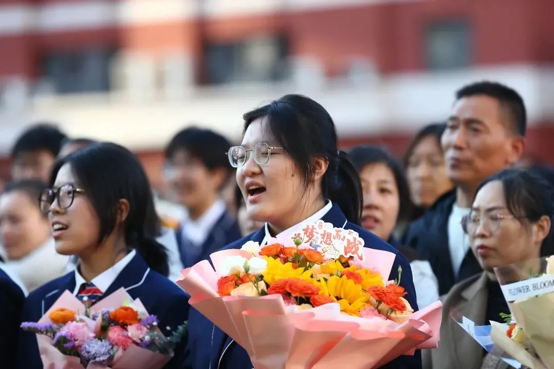 学科特色祝福,尽显师者匠心。李超主任带领高三级部全体教师登台,为26届学子送上专属祝福,全体教师齐声高呼“一举夺魁”,手中金黄的向日葵高高举起,既是对学子们金榜题名的美好期许,更传递着向阳而生、逐梦前行的力量。