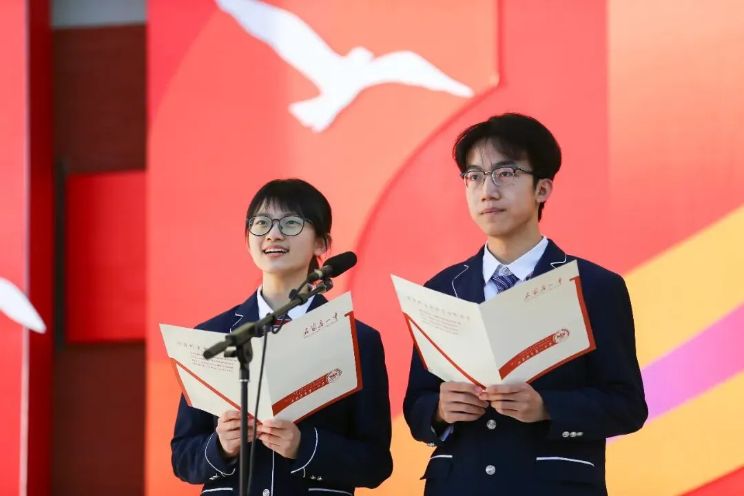 青春的声音,最是铿锵有力。学生代表带来主题朗诵,以青春之名致敬成长,字字句句里是对母校培育的感恩,对父母师长陪伴的感念,更有成年后勇担责任的坚定。