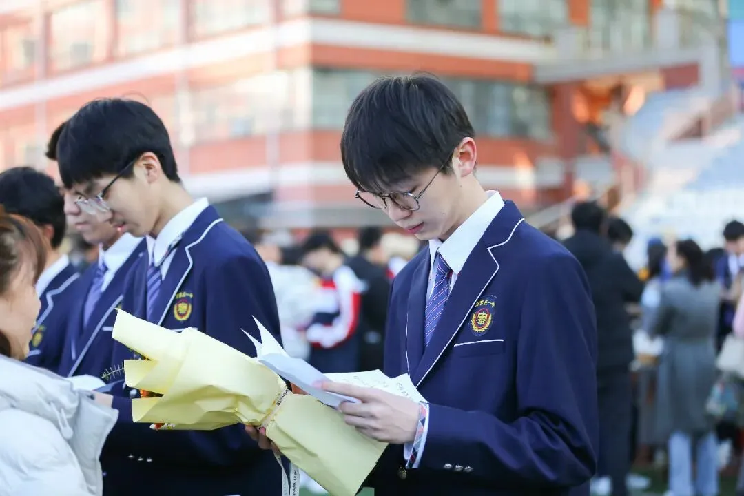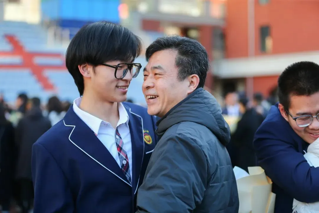 父母的期许,是成长路上最温暖的光。家长代表登台发言,语重心长的寄语里,有对孩子成年的欣慰,有对高考的美好祝福,也有对学校与老师们辛勤付出的诚挚感谢。随后的家书赠送环节,成为现场最动人的篇章,家长们亲手将写满牵挂与期盼的家书递到孩子手中,亲子面对面,指尖传温情,一纸家书,承载的是亲情的重量,更是前行的力量。