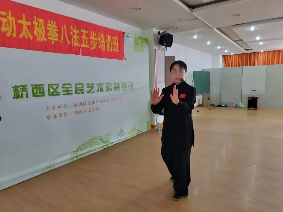 太极拳八法五步是国家体育总局向国内外推广的太极拳标准化入门套路,也是大型体育(武术)活动表演的项目之一。在3.21“国际太极拳日"到来之际,石家庄市桥西区太极拳协会举办了太极八法五步培训班。