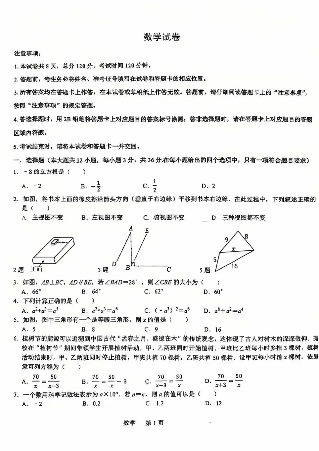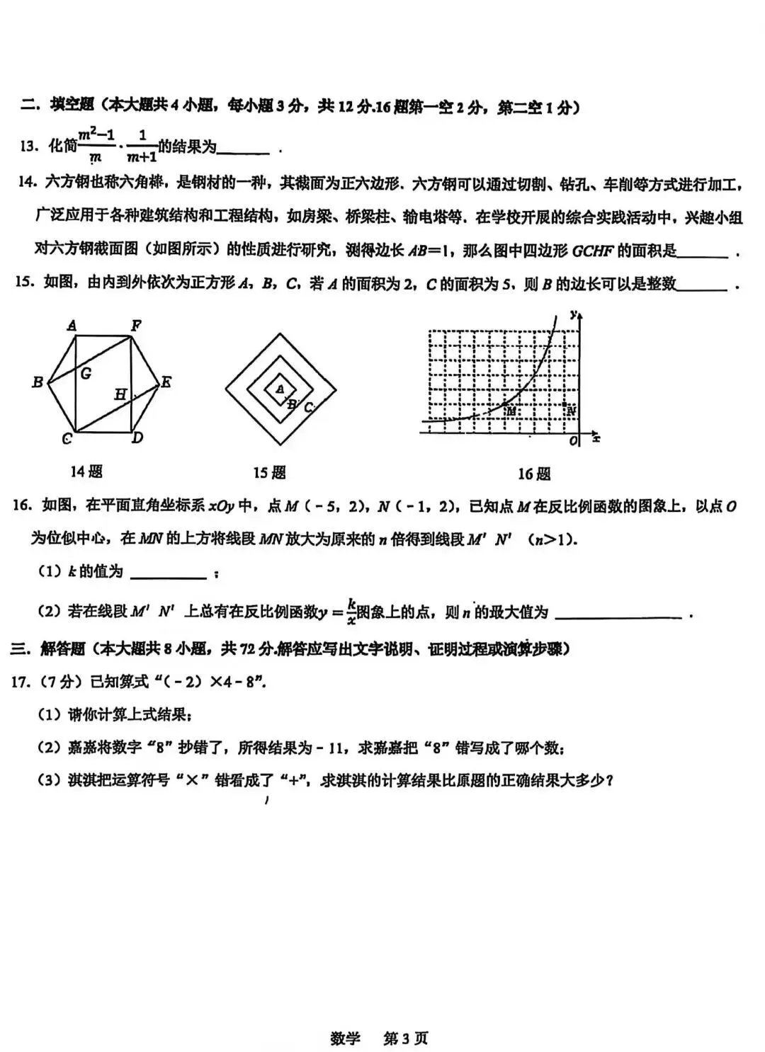 2026年3月河北省石家庄市裕华区初三中考区模数学试卷含答案