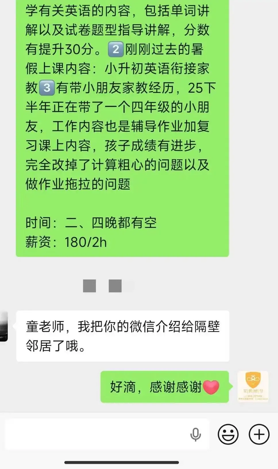 石家庄家教|石家庄铁道大学勘查技术与工程大学生,三年家教经验,擅长初高中英语、数学、作业辅导|石家庄大学生家教石家庄铁道大学家教老师,勘查技术与工程大学生,高考数学134,英语126|石家庄大学生、专职老师一对一辅导石家庄大学生基本信息:大学:石家庄铁道大学姓名:豆攀专业:勘查技术与工程性别:男居住地址:河北省石家庄市元氏县姬村镇龙山路1号石家庄铁道大学龙山校区辅导科目:小学辅导科目:英语、数学、科学初中辅导科目:英语、数学、作业辅导高中辅导科目:英语、数学、作业辅导工作时间:工作日晚上的时间~周日全天的时间~寒暑假、节假日的时间~兴趣爱好:逛公园、游泳、拼图、逛集市中高(考)分数:数学134,英语126家教经历:1、2023年:辅导长安区小学学生,引导学生尝试多样化学习方式,激活不同脑区功能,全面提升认知水平,经过辅导该学生英语成绩从78提升至94;2、2023年暑假:辅导桥西区初中学生,引导学生进行知识输出和同伴教学,在表达中巩固理解,在交流中拓展认知,经过辅导该学生数学成绩从84提升至109;3、2025年:辅导桥西区高中学生,引导学生掌握多种解题路径,培养一题多解和触类旁通的能力帮助学生理清解题思路,掌握答题技巧和题型分类方法,形成标准化答题思维,提高得分率,经过辅导该学生英语成绩从77提升至100;4、2023年:辅导鹿泉区小学学生,培养学生的发散思维和收敛思维,掌握头脑风暴和思维导图等创新工具,经过辅导该学生科学成绩从75提升至92;5、2023年寒假:辅导裕华区初中学生,协助学生建立学习成效追踪体系,定期进行自我诊断和能力评估,经过辅导该学生数学成绩从84提升至99