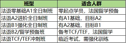 | B2 | 针对具备B1基础,对法语需求更高的学员,如移民、专业语言学习者、计划国际生留学或需阅读专业文献的学员 |