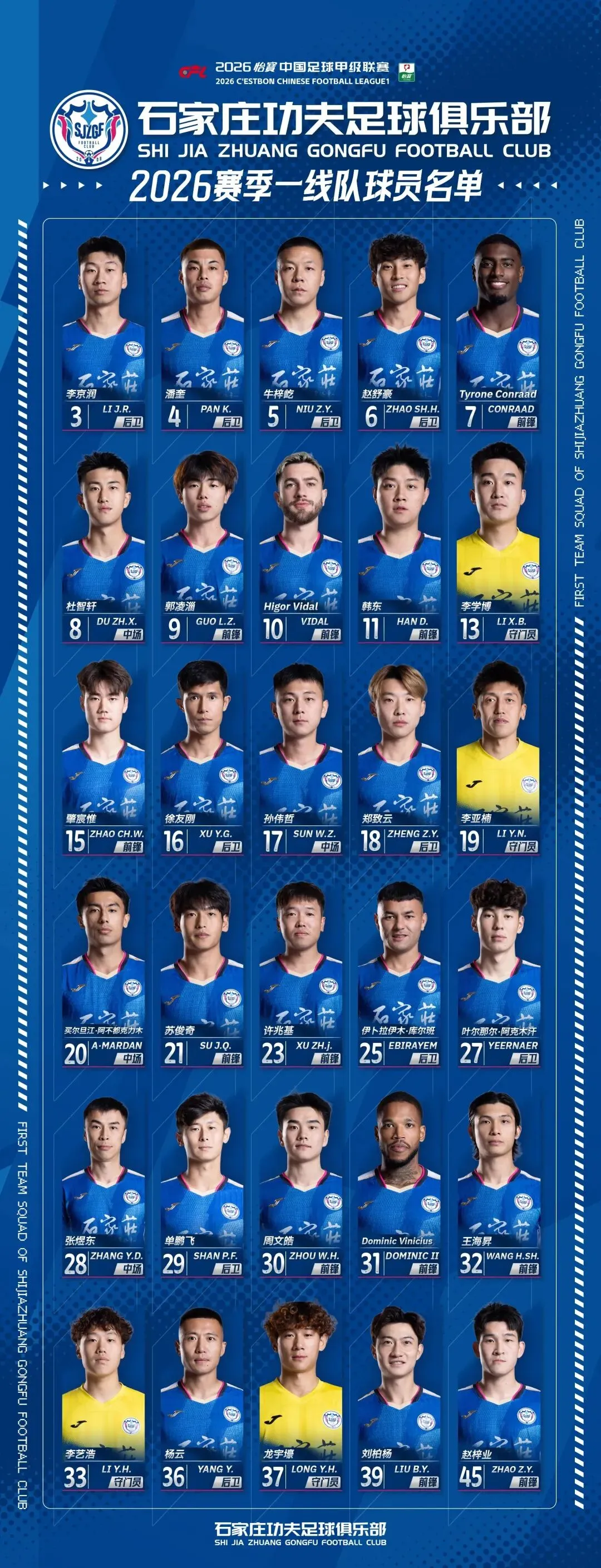 还有半个月,2026 赛季(新赛季)的中甲联赛,就将重新拉开战幕,石家庄功夫的 3 名新外援都已经亮相了,3 月的裕彤也将重新启航!