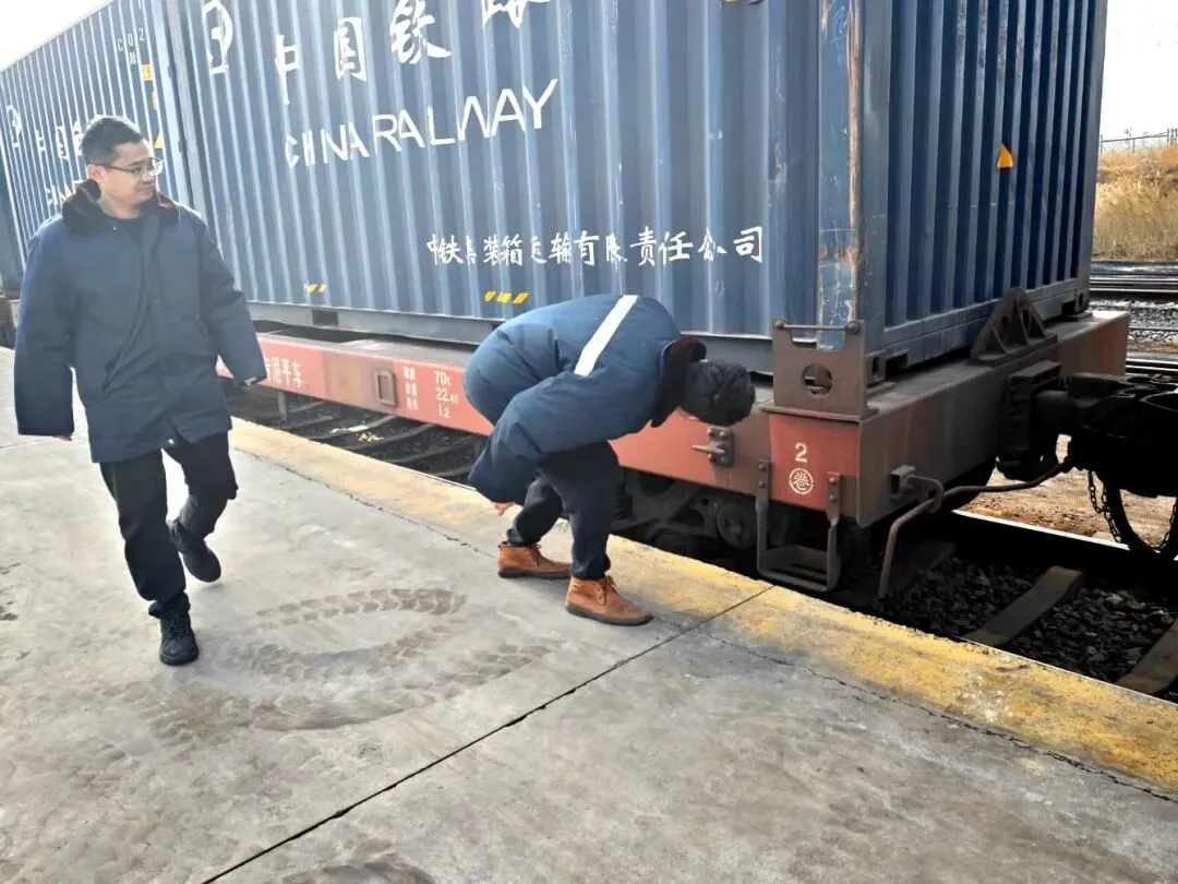 潞城营业部加强集装箱装车检查,重点对集装箱平车锁头入位情况、残留物清理等重点环节进行检查,确保集装箱运输安全。(潞城营业部供稿)