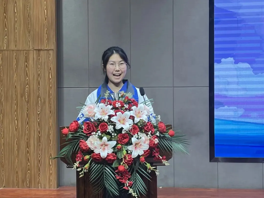 随后,国家奖学金获得者靳芸星同学结合自身成长经历,深情分享三年来的蜕变与感悟。 她以真挚语言感恩父母养育之恩、感念师长教诲之恩,展现了新时代青年懂得感恩、向阳成长的精神风貌。