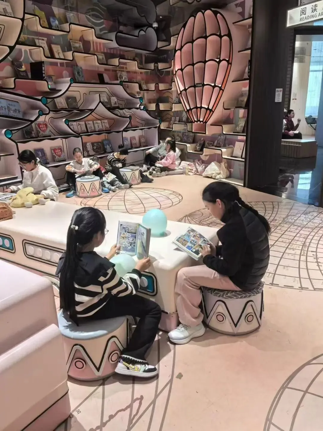 浓厚的阅读氛围与贴心的场景服务,让不同年龄的读者在此找到归属感。“第一次来就被惊艳到了,设计既有颜值又有文化底蕴,不是单纯的网红打卡地,而是能真正静下心读书的地方。”大学生悠悠每周都会来此自习,她表示镜像书墙带来的沉浸感,让学习效率大幅提升。带着孩子前来的王女士则将其视为亲子阅读的绝佳去处:“孩子从小喜欢看书,这里的儿童区设计贴心,书籍种类全,还常举办文化讲座、读者分享会,比在家看书更有氛围。”