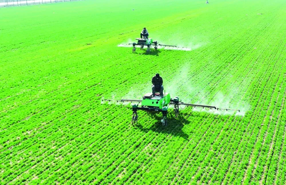 3月19日,在石家庄市晋州市麦田,农民驾驶植保机器人进行小麦春管作业。本报记者 梁子栋 摄