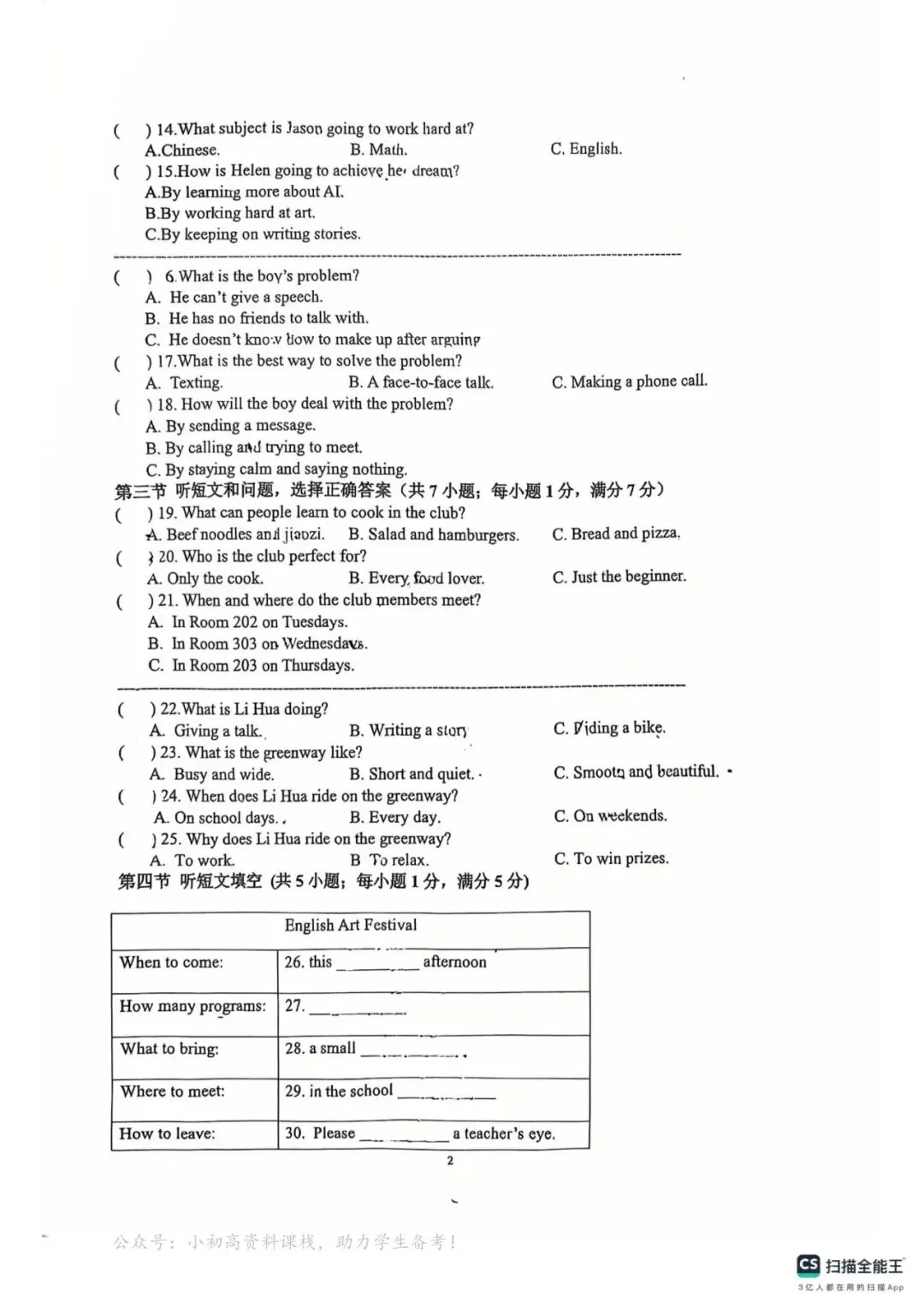 PDF版试题、听力MP3及答案获取方式