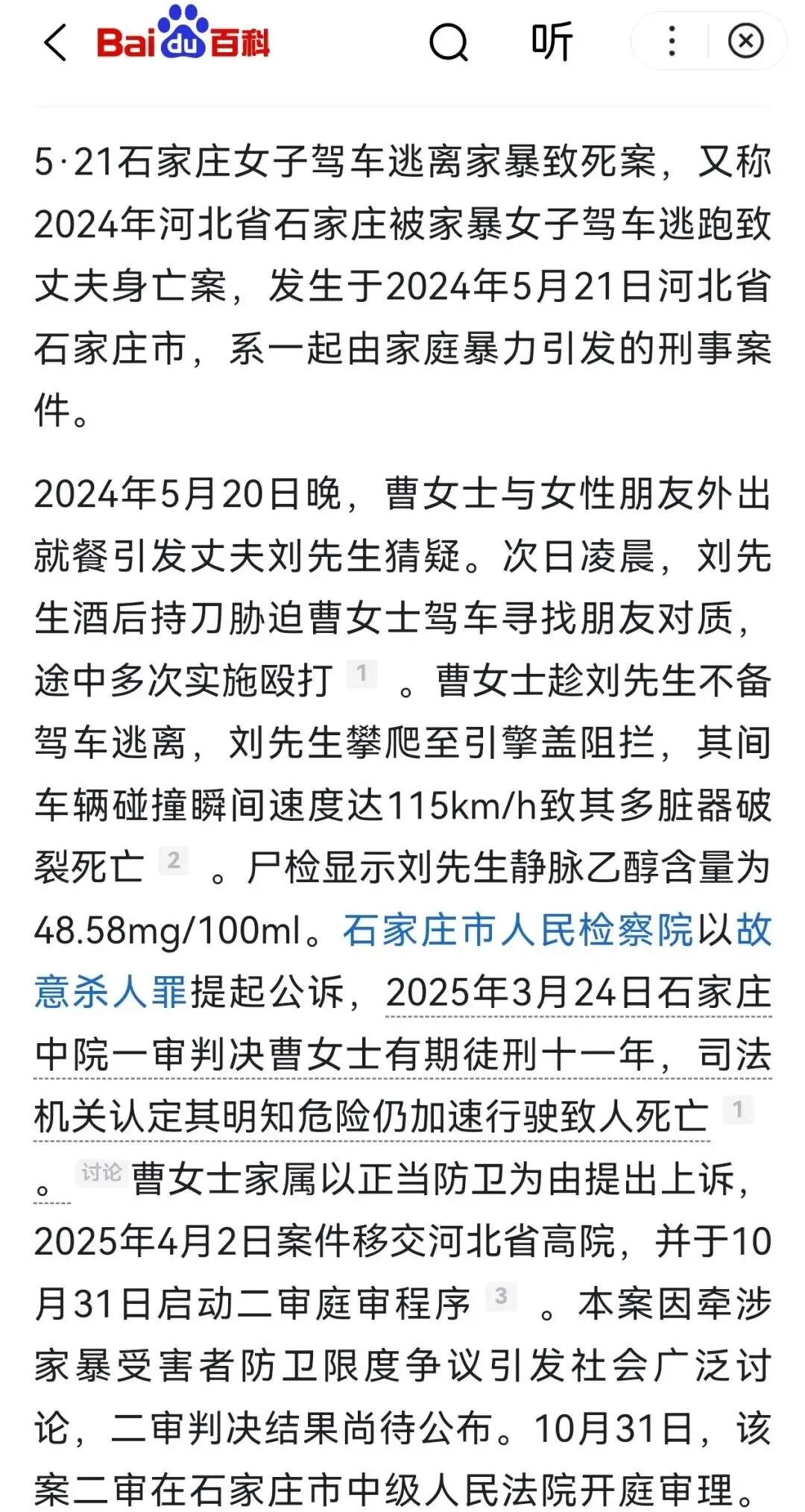2024年5月21日凌晨。河北石家庄曹女士被丈夫刘某持续凌虐殴打三小时。期间的手段包括辱骂殴打持刀威胁,以及把女方衣物全部扒光扔在大街人格侮辱。在曹女士驾车逃离的过程中刘某扒着车窗出事故身亡。