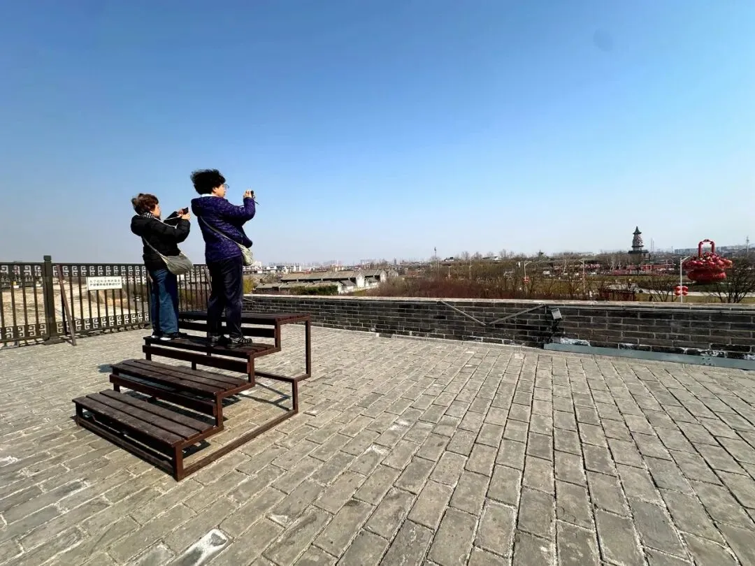 正定古城禁飞无人机。我们站在城楼,俯瞰正定古城全景,能望见城里的四座古塔。 离开南城门,我们又来到了正定县政府。不要以为我们是来上访的,全是因为合唱团姐妹金燕萍提醒,在正定有一个新建的政府大楼,一直不被启用。