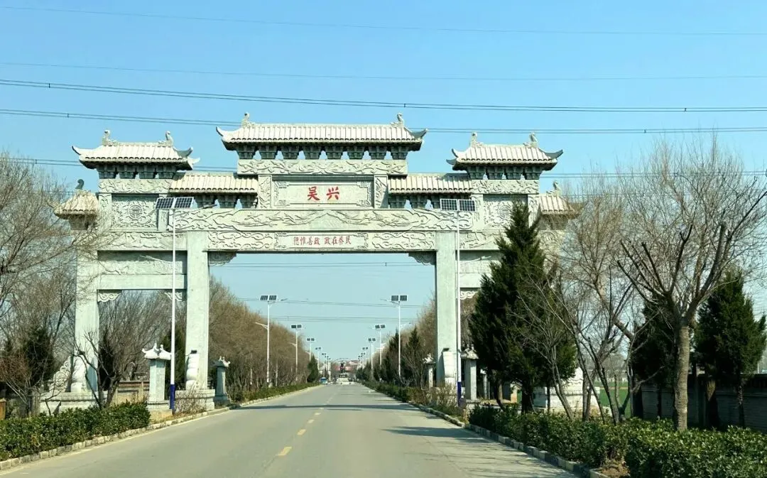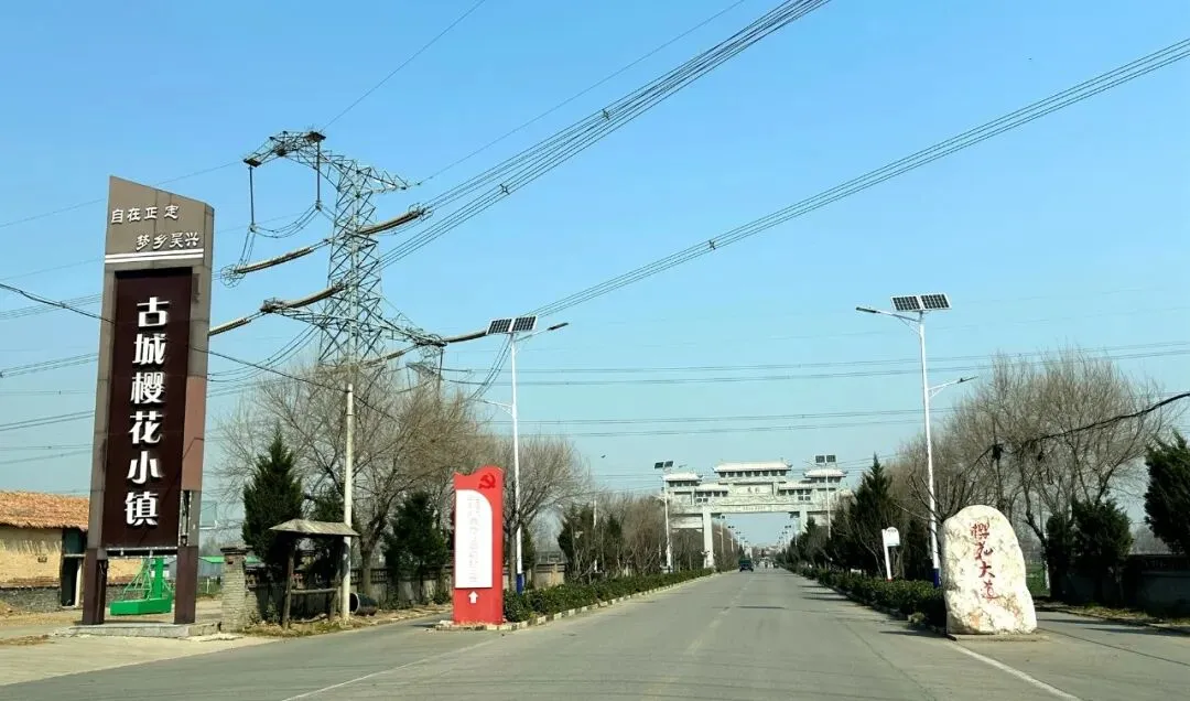 正定南城门上的宣传栏,提到附近有一个樱花小镇,在吴兴村。我看顺路就去了。
