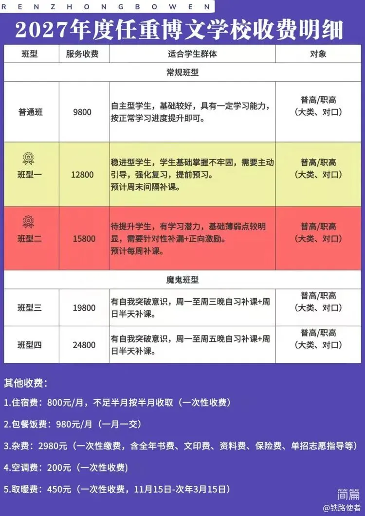 学校公布2027年度详细收费明细,各项费用清晰透明,让家长与学生明确投入,无隐藏成本。选择任重博文,享受专业备考指导与贴心服务,助力单招成功。