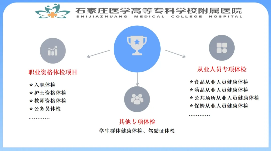 大家好,这里是石家庄医学高等专科学校附属医院体检中心。